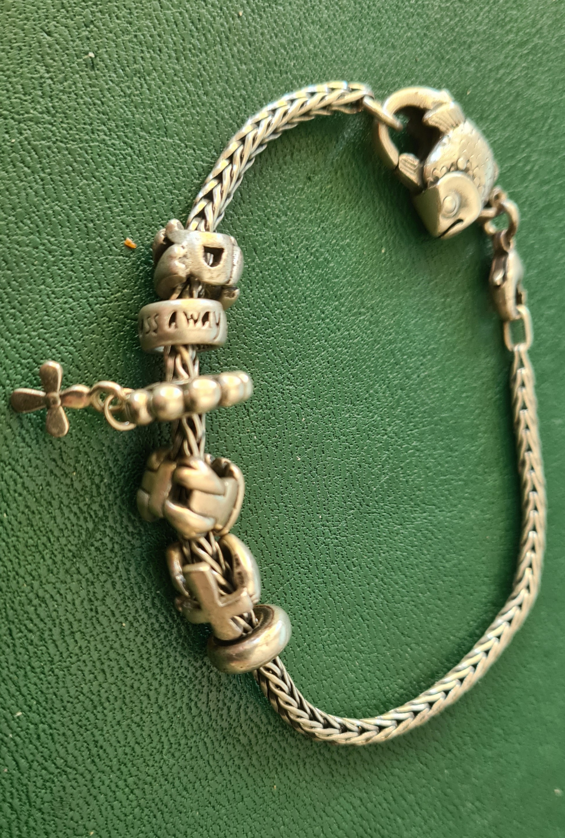 Bracciale Trollbeads formato da 6 elementi di argento piu' chiusura in argento forma pesce.