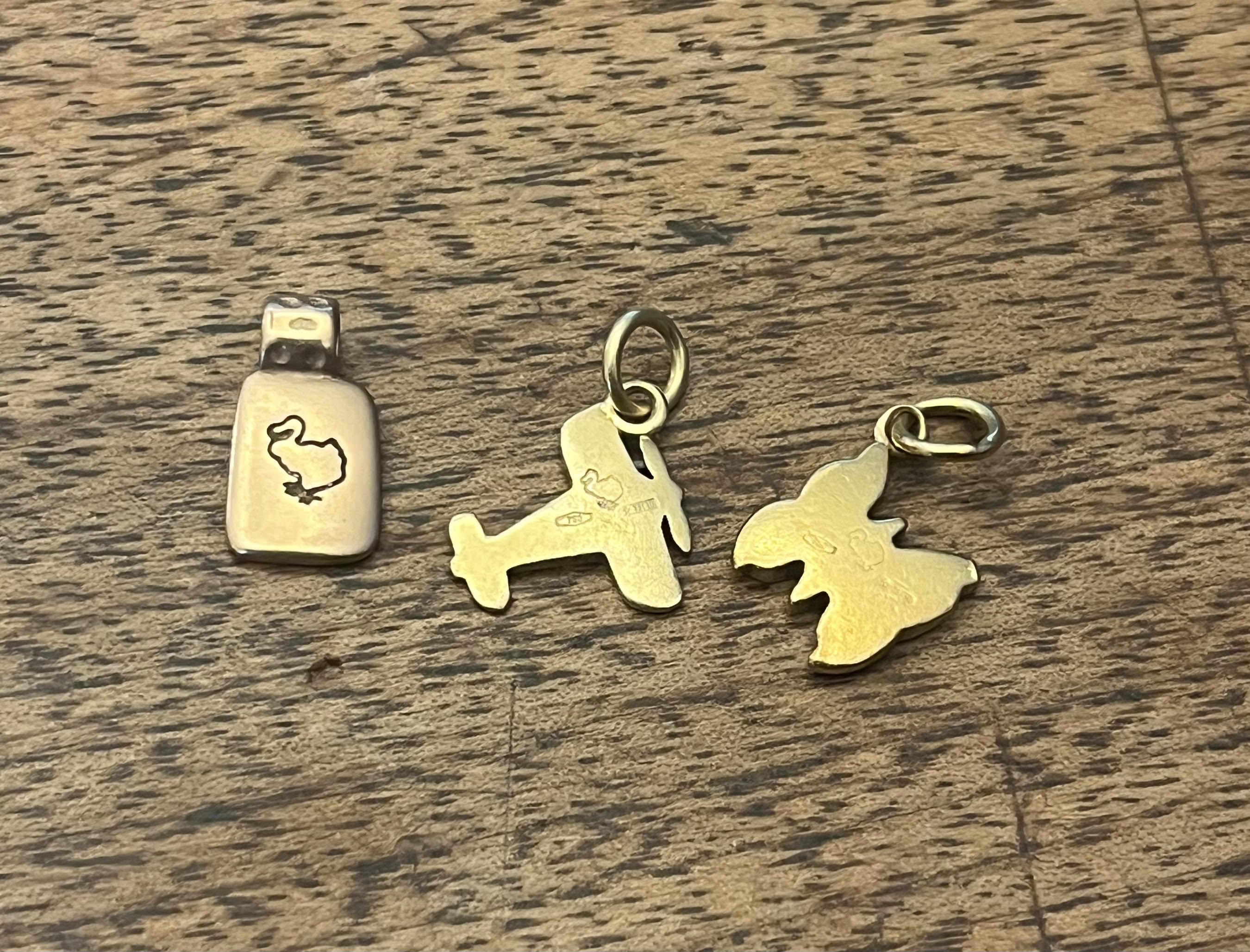 Piastrina (oro rosa), Aeroplano e farfalla (oro giallo). Valuto offerte singolarmente.